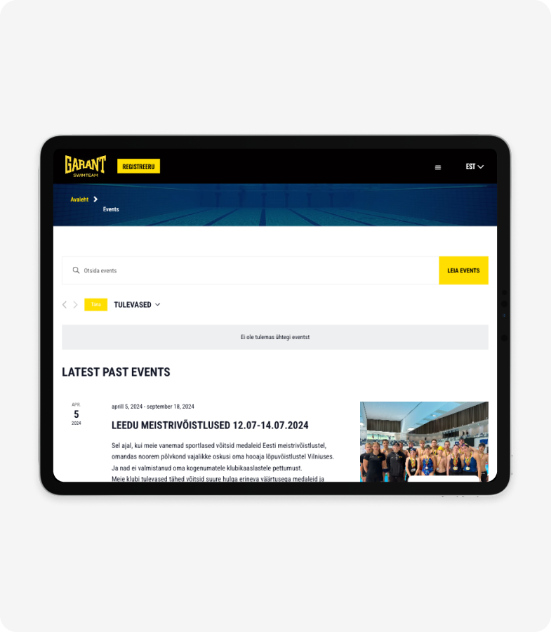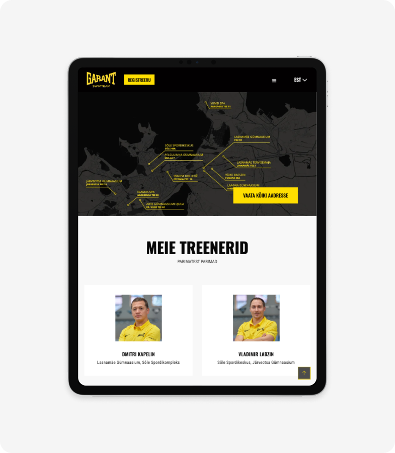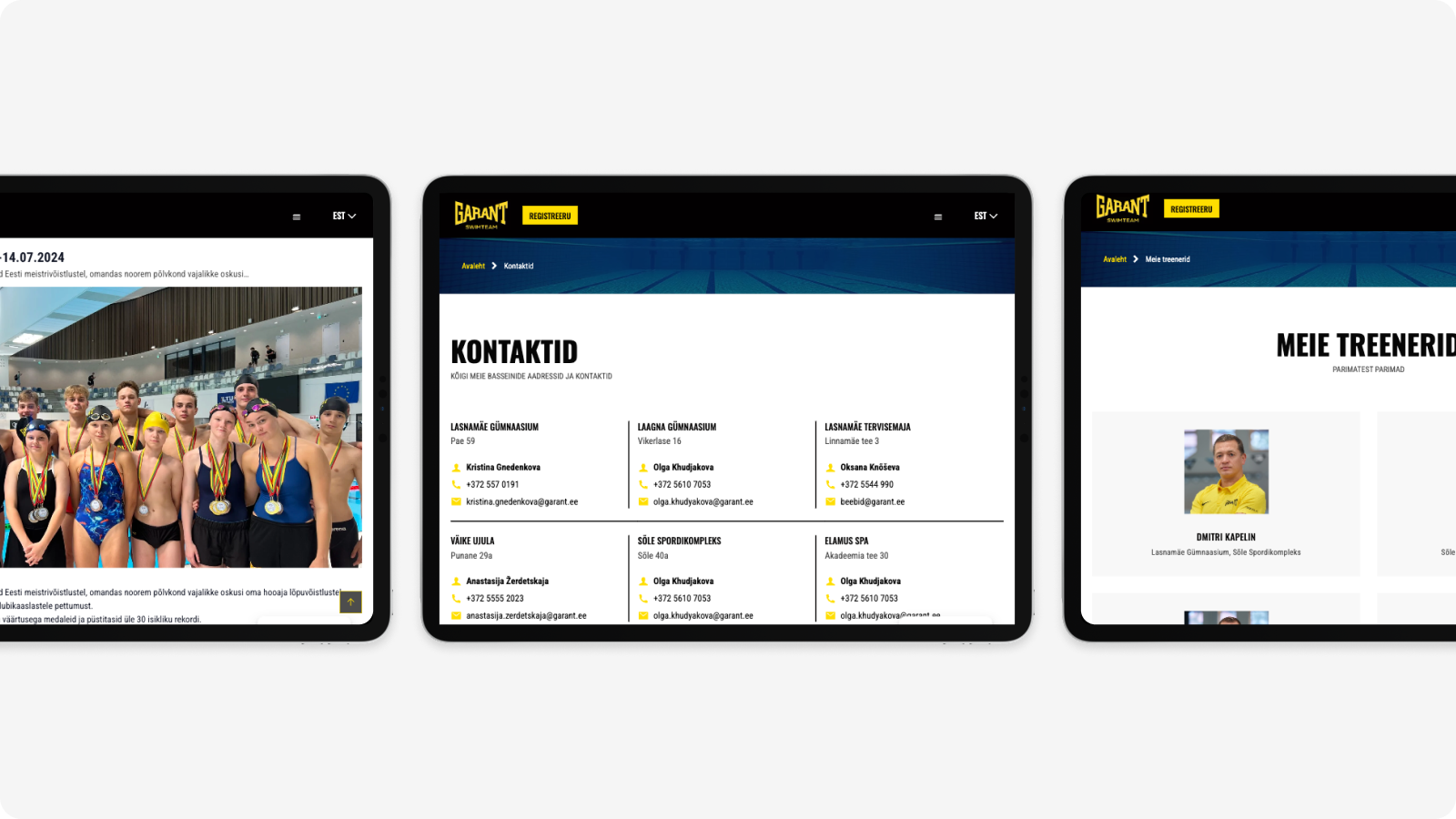 Designed a family-friendly site for a Tallinn swim school with programs for babies, preschoolers, school-age swimmers, Masters, and private lessons—plus clear CTAs for seasonal enrollment.